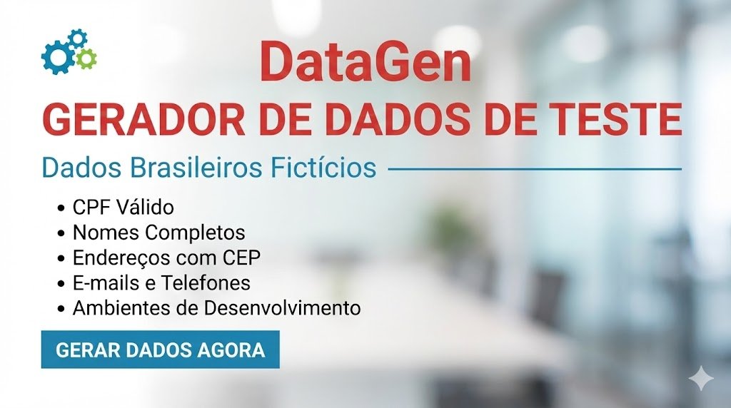 Com ele, você pode gerar automaticamente CPFs válidos, nomes completos, datas de nascimento, telefones, e-mails e endereços brasileiros fictícios, facilitando testes de formulários, bancos de dados, cadastros, APIs e aplicações sem utilizar informações reais.