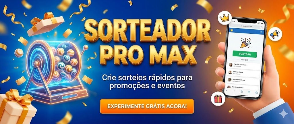 Ideal para promoções, eventos, rifas, campanhas em redes sociais, salas de aula e ações comerciais, o Sorteador Pro Max permite cadastrar nomes, números ou listas completas de participantes e realizar sorteios com apenas um clique.